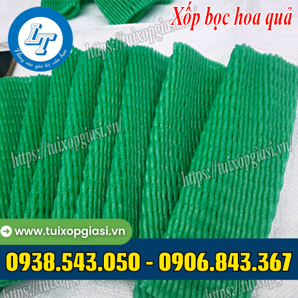 Xốp bọc hoa quả là loại xốp được làm từ nhựa nguyên sinh. Sản phẩm có kết cấu dạng lưới với độ co giãn, đàn hồi cao, không tạo lực siết lên trái cây. Chất liệu nhựa an toàn, không chứa hóa chất độc hại nên không ảnh hưởng đến sức khỏe. Hiện, sản phẩm này được dùng để bọc các loại trái cây tại nhà vườn.