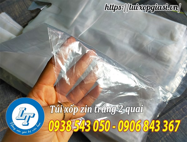 Túi xốp zin trắng 2 quai rất mỏng, nhẹ, nhiều kích thước khác nhau, phù hợp với mọi nhu cầu. Hiện nay, loại túi xốp này thường được dùng để đựng thực phẩm, mỹ phẩm, sách vở, đồ tạp hóa, gia dụng,…